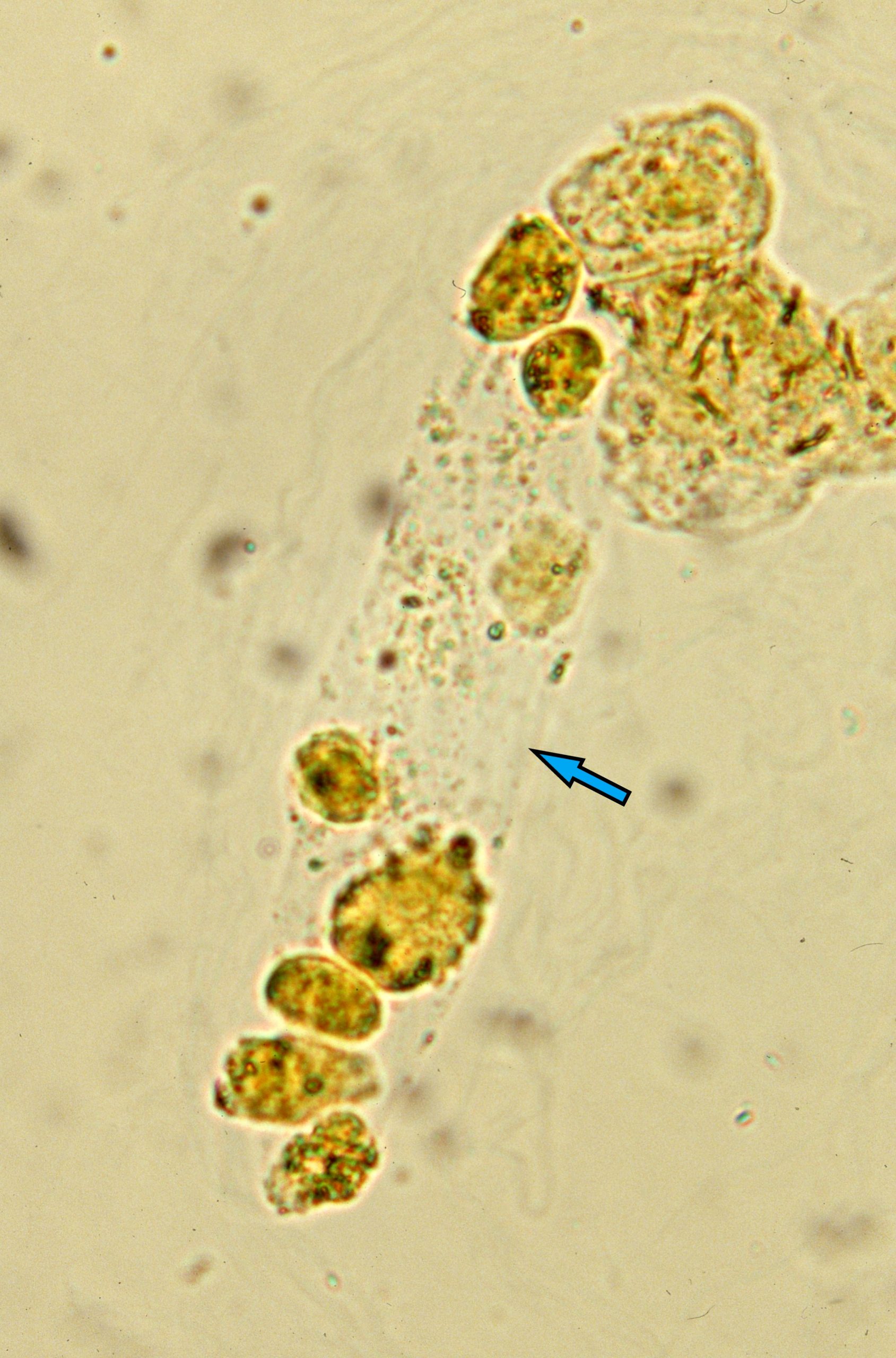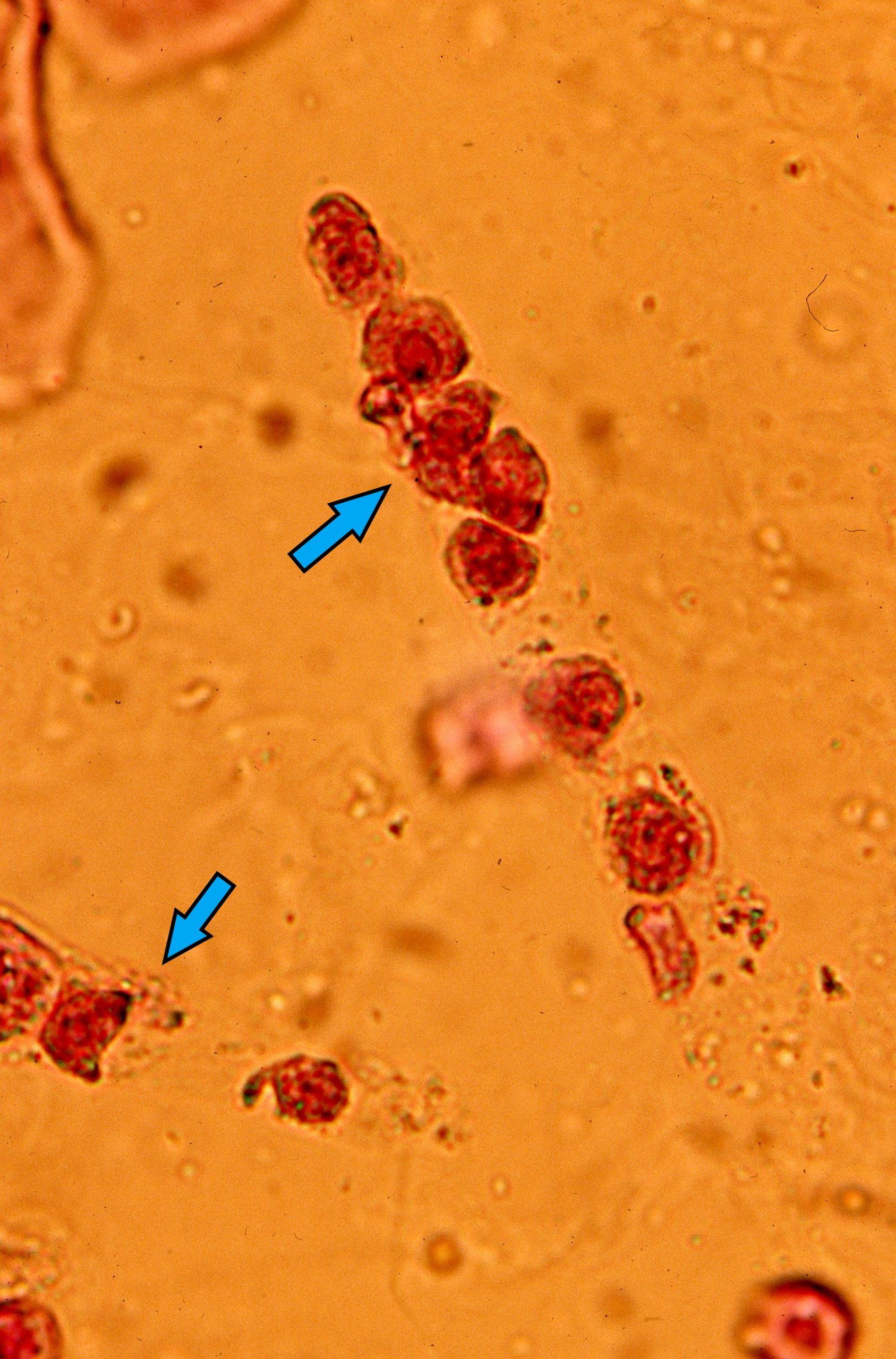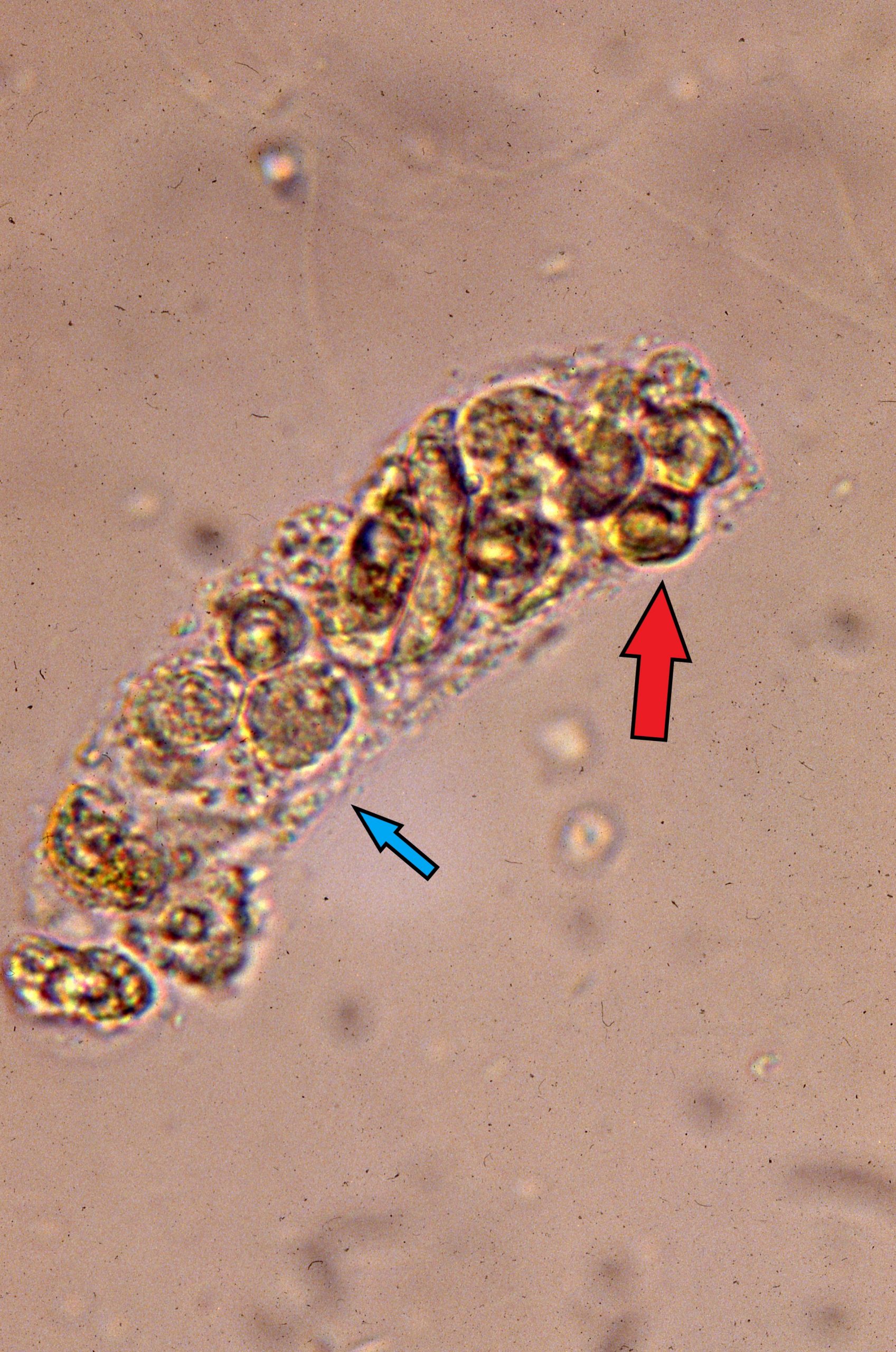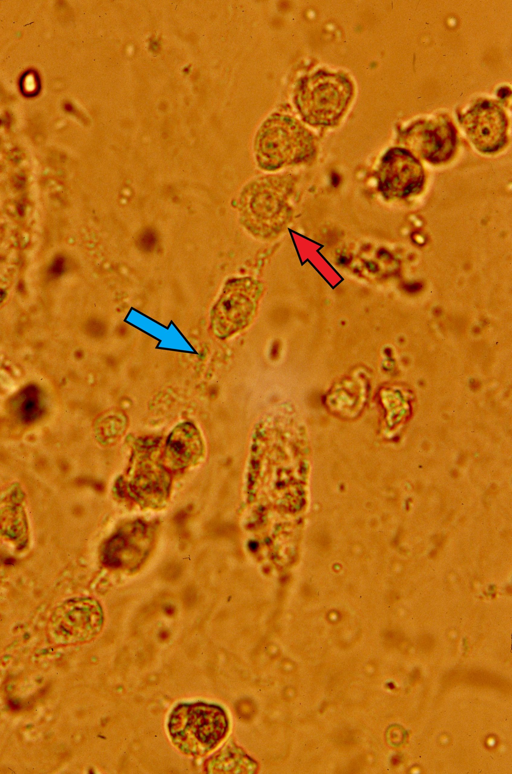 MAG 40X Red arrow point epi cell blue point to protein matrix