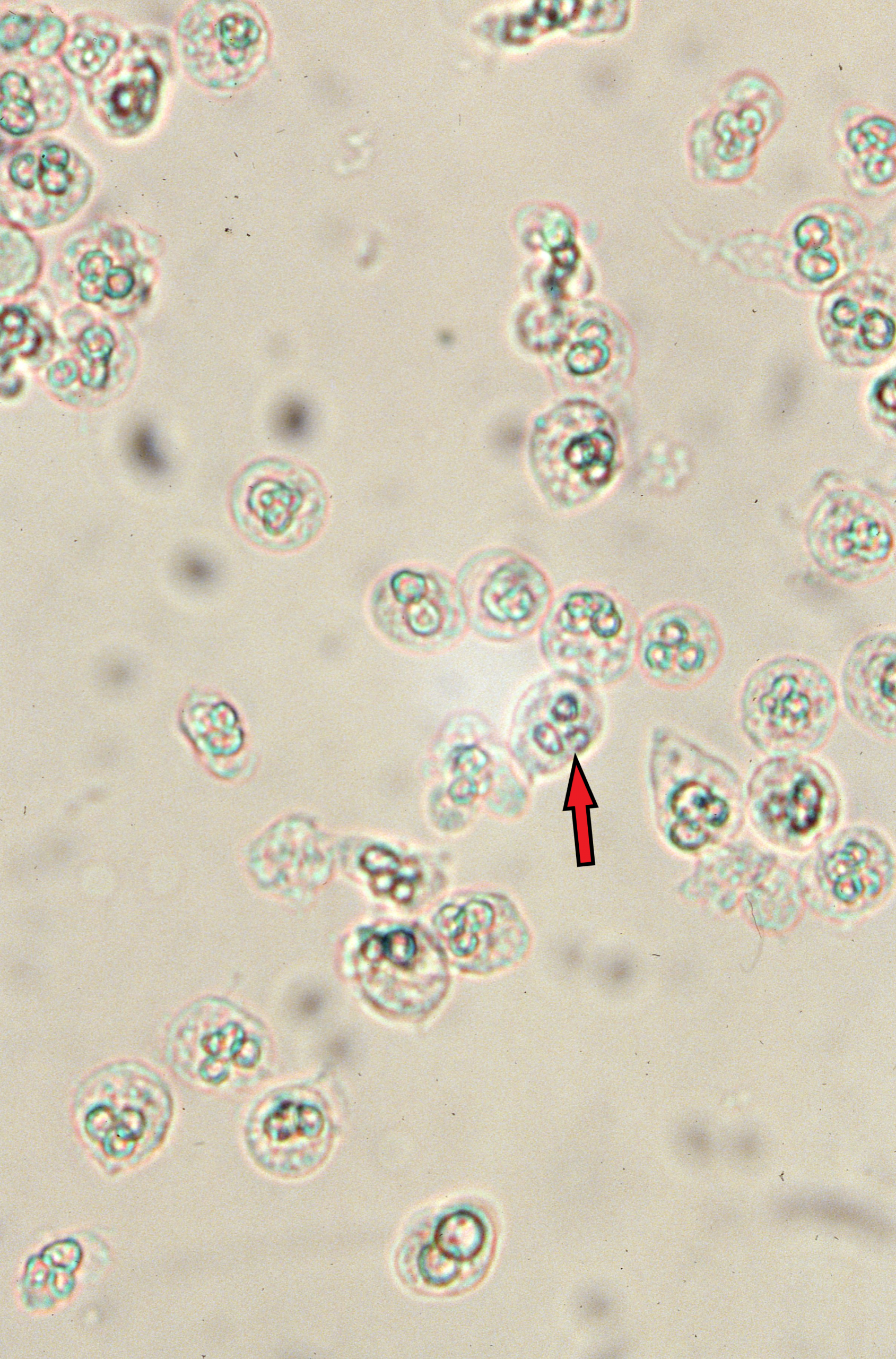 Magnification 40X Photos shows numerous WBC DescriptionUrinary Sediment Unstained Mag 40x WBC showing pseudopod